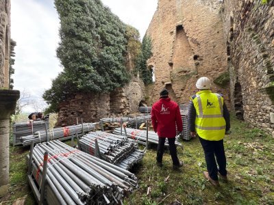 La valorisation du site franchit une nouvelle étape cette année avec la cristallisation des murs de la tour nord-est du château haut. Le site étant difficilement accessible par des moyens terrestres, cette dernière a débuté ce jour avec une opération d'héliportage pour acheminer les 200 tonnes de matériel sur la partie haute du site.